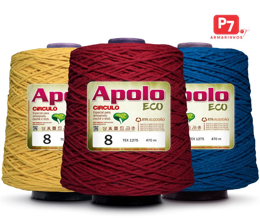 O barbante Apolo Eco possui três espessuras distintas, para que você possa trabalhar em diversos projetos, obtendo resultados diferentes. Indicado principalmente para a confecção de peças de decoração, o Apolo mostra-se versátil e com um excelente resultado quando utilizado para a confecção de acessórios, como bolsas de praia, por exemplo.