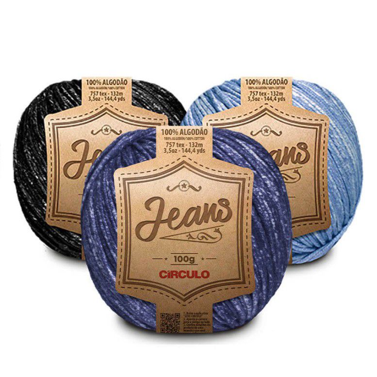 O primeiro fio do Brasil com efeito do tecido mais amado no mundo o Fio Jeans com 100% de Algodão, possui tonalidades diferenciadas para representar aspectos de lavagens e tingimentos variados em peças de moda e decoração! Você vai amar fazer jeans com as próprias mãos!